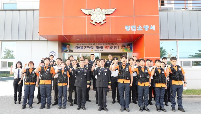 [강진=정찬남 기자] 김조일 전남소방본부장이 지난 19일 강진소방서를 방문해 업무보고 청취 및 직원들을 격려하고 소통의 시간을 가졌다.