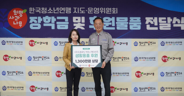 한국청소년연맹(총재 임호영) 사회공헌사업 희망사과나무는 주식회사 드림로드커뮤니케이션즈(대표 강연주)가 국내 복지사각지대 아동·청소년을 위해 기부한 양모이불, 텀블러, 체중계 등 1천4백만원 상당의 생활용품을 전달받았다.