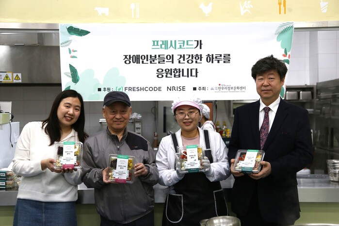 건강식품 브랜드 프레시코드를 운영하는 엔라이즈(대표 김봉기)가 4월 20일 ‘장애인의 날’을 앞두고 서초구립 한우리정보문화센터(관장 이재용)에 샐러드와 운동용품을 지원했다고 18일 밝혔다. 지난 3월 운동기구 기부에 이은 두 번째 나눔이다.