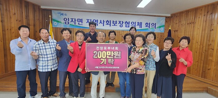 [신안=황승순 기자]안군 임자면 전장포 마을 부녀회는 지난 19일 임자면사무소에서 임자면 지역사회보장협의체의 ‘임자사랑! 희망나눔!’ 모금운동에 기부금 200만 원을 기탁했다.