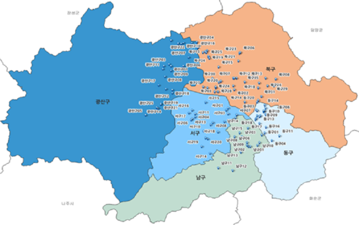 | ▲ 그늘막 우선설치 필요지역 분포현황 위치도 / 광주광역시 제공 |