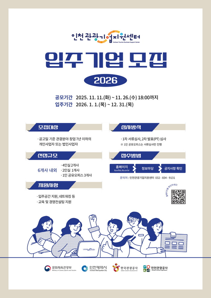 | 2026년 인천관광기업지원센터 신규 입주기업 모집 홍보 이미지 (사진=인천관광공사) |