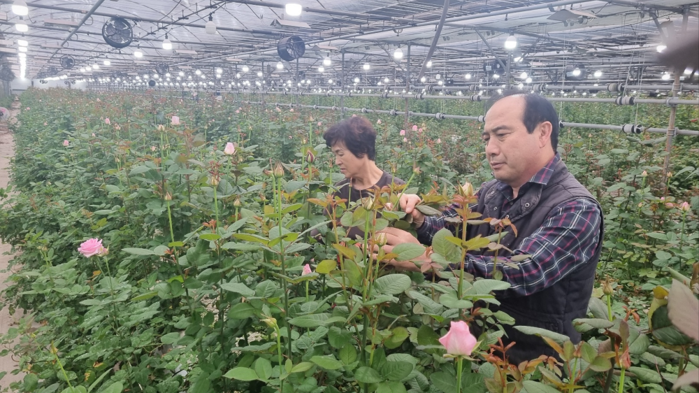 | ▲ 장미 적뢰 작업중인 땅심화훼영농조합법인 조우철 회장 부부 / 강진군 제공 |