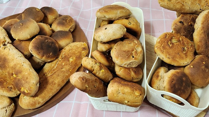 | ▲ 강진군 도암면 석천마을 주민들이 마을에서 재배한 밀과 농산물로 직접 구운 일명 '아짐빵' 출시 / 사진=강진군 제공 |
