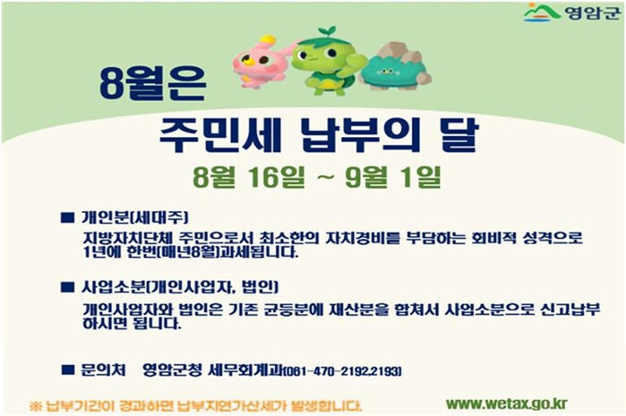 | ▲ 영암군 주민세 납부의 달 홍보 안내 이미지 / 영암군 제공 |