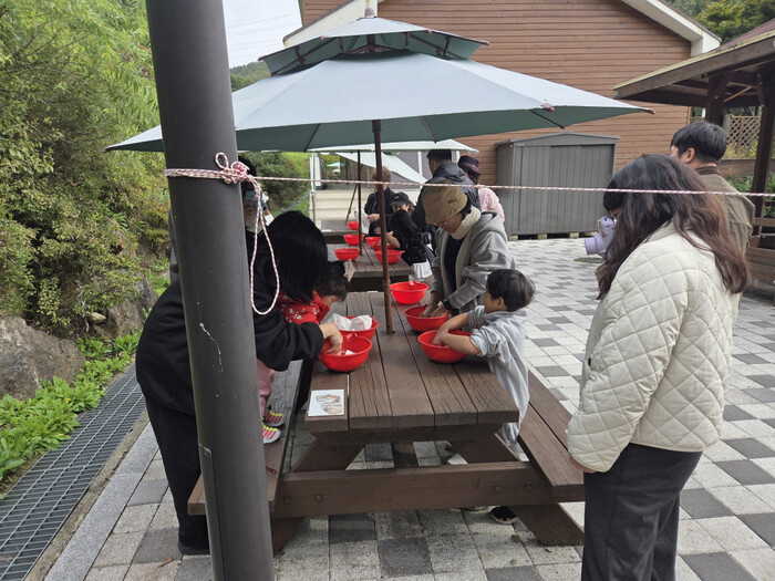 | ▲ 의왕도시공사는 10월 21일 의왕 바라산자연휴양림에서 지역 내 사회적 약자를 대상으로 한 ‘탄소중립 힐링문화체험’ 프로그램을 진행하고 있다 /사진제공=의왕시 |
