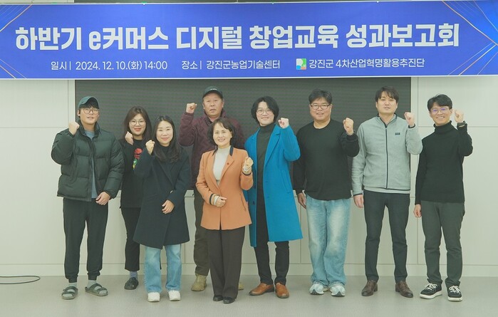 [강진=정찬남 기자] 전남 강진군은 지난 10일 강진읍 농업기술센터 소회의실에서 '2024년도 하반기 e커머스 키움 패키지 교육 성과보고회'를 개최했다. 이번 보고회는 10월부터 12월까지 진행된 디지털 창업 교육의 성과를 공유하고, 교육생들이 이룬 성과를 지역사회와 연계해 확산하기 위해 마련됐다.