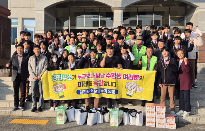 강진 푸소 협동조합은 지역 내 수험생들을 응원하기 위해 현수막을 게시, 응원 메시지를 전달했다. 지난 7일에는 전체 운영 농가들이 모금한 장학금을 강진군장학재단에 기탁했다.