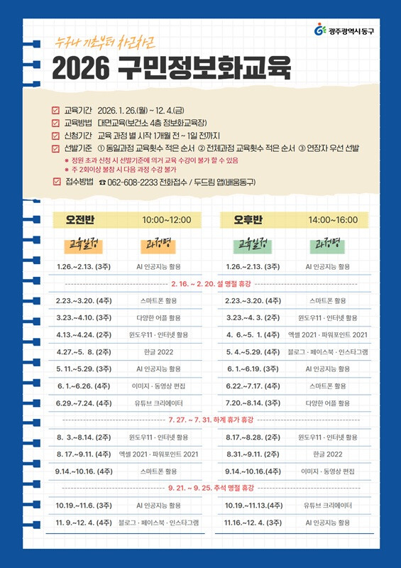 | ▲ ‘구민 정보화 교실’ 연중 운영 포스터 / 광주광역시 동구청 제공 |