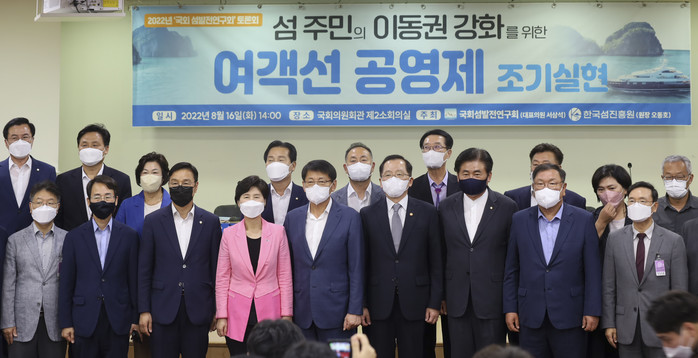 [무안=황승순 기자]국회 섬발전연구회(대표의원 서삼석)는 한국섬진흥원(원장 오동호)과 공동으로 8월 16일 오후 2시 국회 의원회관 제2소회의실에서 “섬 주민의 이동권 강화를 위한 여객선 공영제 조기 실현”을 주제로 토론회를 개최했다.