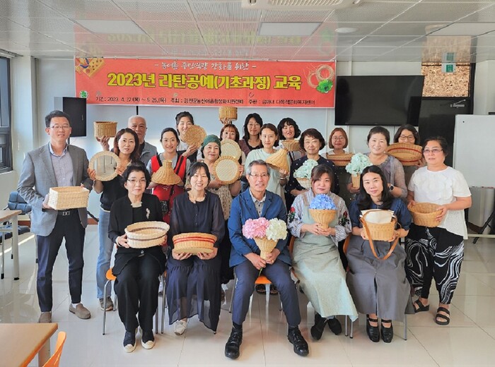 [강진=정찬남 기자] 전남 강진군농어촌개발추진단(농촌활성화지원센터)이 지난 25일, 주민역량강화사업의 일환으로 작천면 금까내 복합문화센터에서 라탄공예(등공예) 기초교육과정 수료식을 가졌다.