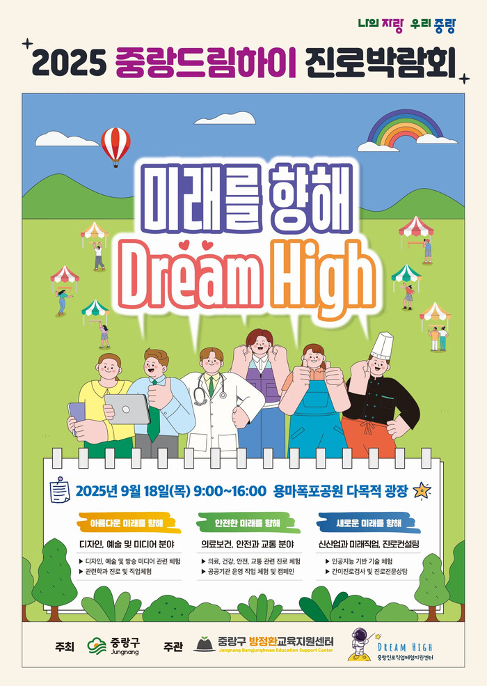 [시민일보 = 여영준 기자] 서울 중랑구(구청장 류경기)가 18일 오전 9시~오후 4시 용마폭포공원 다목적광장에서 ‘2025 중랑드림하이 진로박람회’를 개최한다.