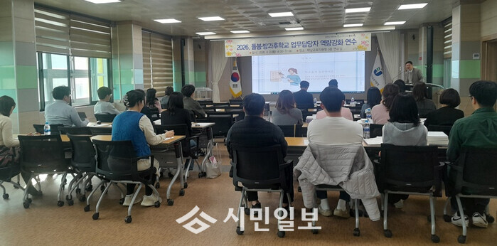 해남동초등학교 늘봄실장 이산을 강사로 초빙해 진행한 이번 연수에는 해남 관내 초·중학교 교감, 늘봄실장, 늘봄실무사, 방과후학교 담당 교사를 대상으로 2026. 초등 돌봄·중등 방과후학교 길라잡이를 바탕으로 관내 업무 담당자들에게 돌봄학교와 방과후학교 업무 관련 도움을 주고자 실시됐다.