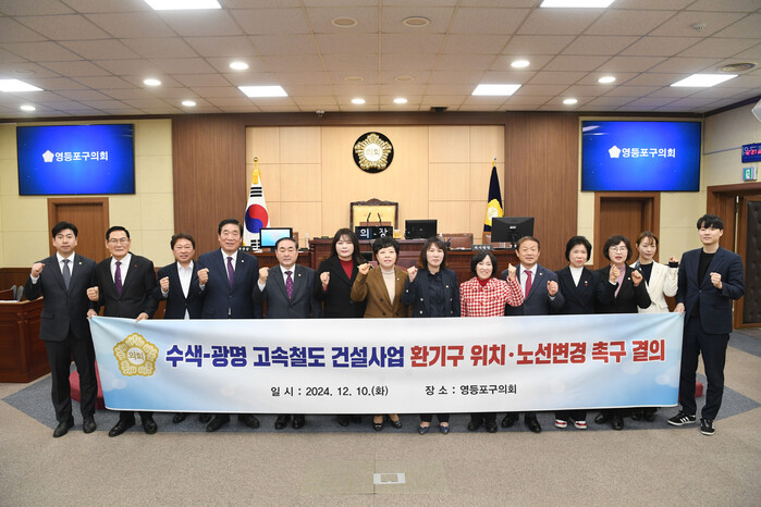 [시민일보 = 여영준 기자] 서울 영등포구의회(의장 정선희)가 지난 10일 열린 제257회 제2차 정례회 제3차 본회의에서 '수색-광명 고속철도 건설사업 노선 변경 및 환기구 설치 반대 촉구 결의안'을 채택했다.