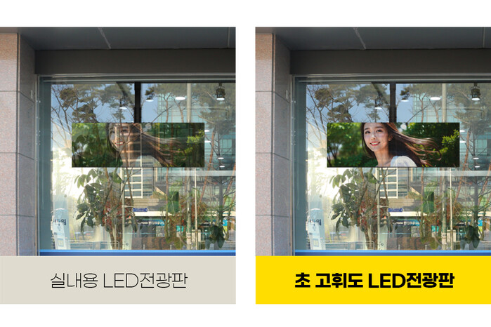 이러한 점으로 인해 조명이 강하거나 햇빛이 들어오는 창가가 있는 백화점이나 교회, 카페 등에서도 고휘도 LED 전광판을 이용해 더욱 효과적으로 광고할 수 있게 되었다.