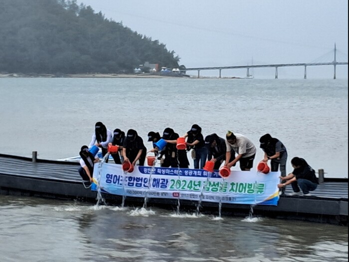 이날 행사는 어업조합법인 ‘해광’에서 1,100만 원 상당의 감성돔 치어 15만 마리를 강진 피싱 마스터스를 위해 후원했으며 강진군, SDN(주), 강진군바다낚시어선협회 등 관계자 10여 명이 참석했다.