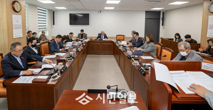 | ▲ 이성옥 해남군의회 의장이 지난 17일(월) 오전 의회운영위원회실에서 열린 제17차 의원간담회를 주재하고 있다. / 해남군의회 제공 |