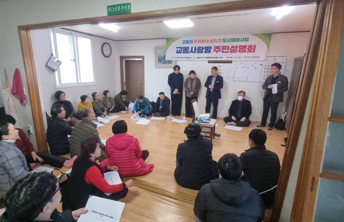 주요 사업은 ‘교동사랑방 신축’, ‘교동점방(구 삼성슈퍼) 리모델링’, ‘마을공원 및 집 수리’, ‘가로환경개선’, ‘골목길 재생’ 등이고, 노후된 기반시설 정비로 지역주민 삶의 질 향상이 목표다.