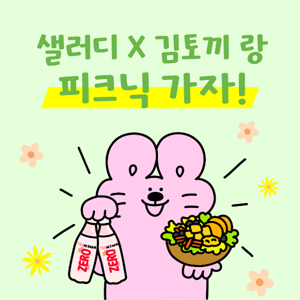 세트 메뉴 중 하나인 ‘김토끼의 달콤한 피크닉 SET’는 담백하고 고소한 두부와 달콤한 단호박, 아삭한 당근라페가 어우러진 비건 탄단지 메뉴인 ‘단호박두부 샐러디’와 샐러디의 건강 간편식 브랜드인 레이지랩의 제로 슈가, 제로 칼로리 스파클링 음료인 ‘티키타카’의 구성으로 이루어졌다.