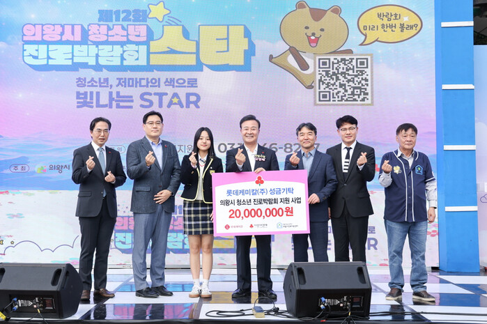 [의왕=송윤근 기자] 경기 (재)의왕시청소년재단(이사장 김성제) 산하 의왕시진로지원센터는 10월 24일 부곡체육공원에서 열린‘제12회 의왕시청소년진로박람회’현장에서 ‘의왕롯데케미칼 2천만원 지정기탁금 전달식’을 진행했다.