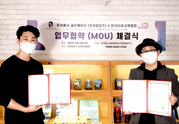 [시민일보 = 이승준 기자] 타로 전문브랜드 프라임뮤즈(운영사: 주식회사 골든에이지. 대표 고수현)는 타로의 올바른 교육문화 정착과 새로운 직업으로의 가능성을 널리 알리고자 한국타로교육협회(대표 신수정)와 업무협약을 이달 20일 체결했다고 밝혔다.
