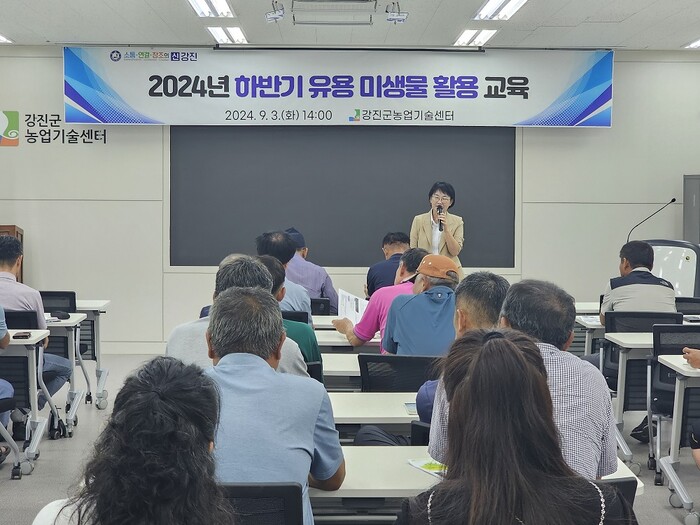 이번 교육은 (재)전남바이오진흥원의 구헌우 연구원을 강사로 초빙, 농업기술센터에서 공급하는 미생물 균종별 특성 및 활용방법에 대해 진행됐다. 교육은 이론뿐 아니라 현장 실증 사례와 질의응답 시간을 더해 농가들의 큰 호응 속에 마무리됐다.