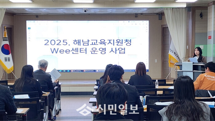 [해남=정찬남 기자] 전남 해남교육지원청(교육장 이자영)이 지난 3월 31일, 해남 관내 초·중·고등학교 상담업무 담당자 35명을 대상으로 Wee센터 운영 사업 설명 및 위기학생 지원을 위한 ‘2025학년도 상담업무 담당자 협의회’를 개최했다.