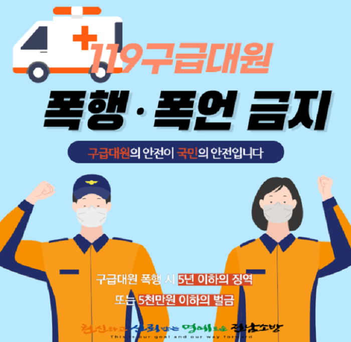 최형호 소방서장은 “구급대원 폭행은 119대원의 안전뿐만 아니라 국민 모두의 안전을 위협하는 중대한 범죄”라며 “구급대원이 안심하고 활동할 수 있도록 따뜻한 격려와 응원을 보내줬으면 한다.”고 전했다.