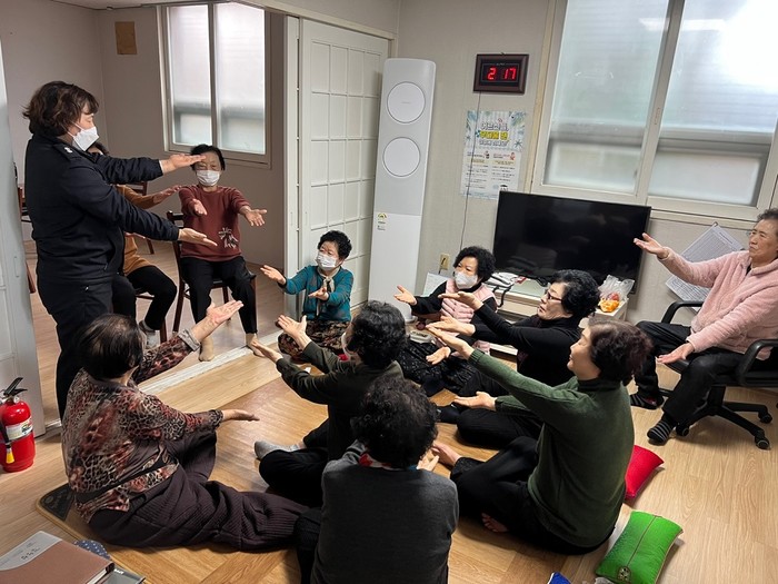 | ▲ 강진소방서 소방공무원이 지난 9일 강진읍 관내 공동주택에서 입주민들을 대상으로 화재 예방 소방안전교육을 실시하고 있다. / 강진소방서 제공 |
