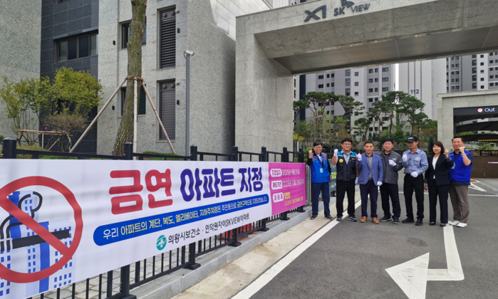 | ▲ 의왕시는 공동주택 내 간접흡연 피해를 예방하고 쾌적한 주거환경을 조성하기 위해 최근 인덕원자이 에스케이뷰아파트를 의왕시 “제18호 금연아파트”로 지정했다 /사진제공=의왕시 |
