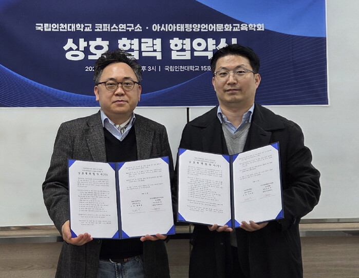 | 인천대학교 코퍼스연구소와 국제학회 아시아태평양언어문화교육학회가 업무협약을 체결했다. [사진=인천대] |