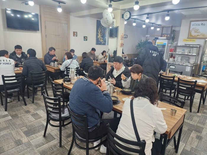 | ▲ 강진군에서 지난 7~9일까지 개최된 전국 생활체육 배드민턴 대회에 참가한 선수들이 강진읍 내 음식점을 이용하고 있는 모습 / 강진군 제공 |