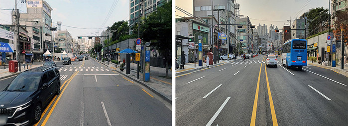 | ▲ 사당로 확장 전(왼쪽), 후(오른쪽) 모습.(사진제공=동작구청) |
