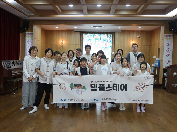[화성=송윤근 기자] 경기 화성시장애인가족지원센터(센터장 임종필)는 지난 6일 용주사에서 비장애형제·자매와 부모를 대상으로 특별한 템플스테이 프로그램을 진행했다.