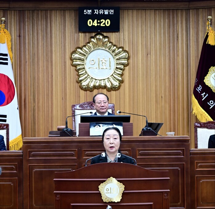| ▲ 박수경 의원, 5분 발언을 하고 있다.(출처=목포시의회) |