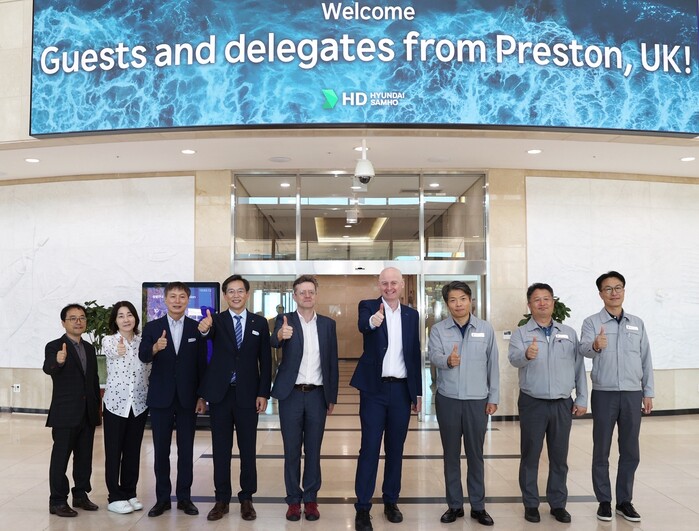 | ▲ 우승희 군수(왼쪽 네번째)가 HD현대삼호중공업을 방문해 영암형 지역순환경제 포럼에 참석 후 관계자들과 기념 촬영하는 모습. (사진=영암군청 제공) |
