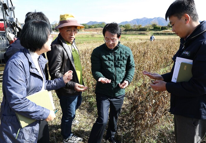 수확 현장에서 만난 서리태연구회 송옥철 회장(62)은 “기존 재래종 서리태는 적은 수량과 늦은 수확기 등의 단점이 많아 논 재배가 어려웠는데, 올해 성공적인 신품종 서리태(청자5호) 재배를 통해 자신감을 얻는 계기가 됐다”며 전폭적인 면적 확대 의지를 내비쳤다.