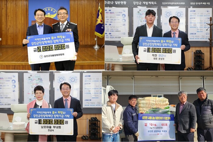 특히 2007년부터 꾸준히 장학금을 강진군민장학재단에 전달해 오고 있다. 강진군 자율방범연합대 김태형 연합대장은 “작은 손길이 어려운 우리 지역 학생들에게 큰 희망의 불씨가 되길 바란다”고 말했다.