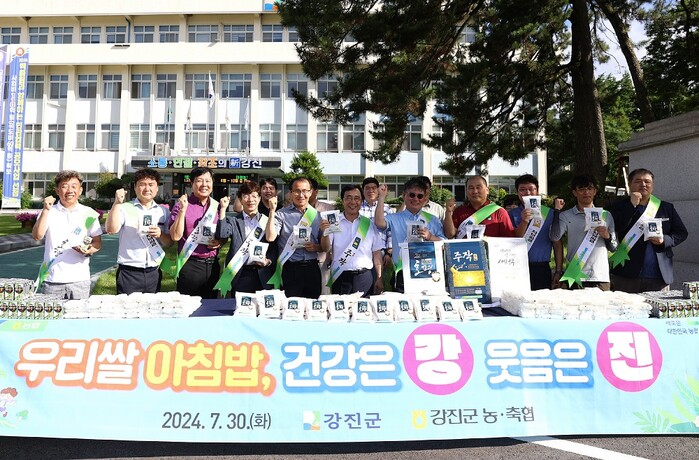 이번 캠페인에서는 군 농정실장, 농협중앙회 강진군지부장, 강진농협 조합장, 강진군농협통합RPC 대표 등이 참여하여 강진쌀로 만든 백설기 떡과 두유 각 1,000개를 준비해 출근하는 직원들에게 나눠줬으며, 행사 후 남은 떡과 음료는 군청 각 실과 소 및 지역 농협에 배부해, 건강을 위한 아침밥의 중요성과 강진쌀 소비 장려를 위한 메시지를 전달했다.