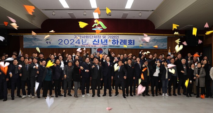 본 행사에서는 우승희 영암군수를 포함해 영암군의회의원, 기관장, 기업인, 사회단체장 등 내빈 소개가 이어진 가운데 소개 받은 참석자들은 서로 예의를 갖춰 새해 축하 하례인사를 나눴다.