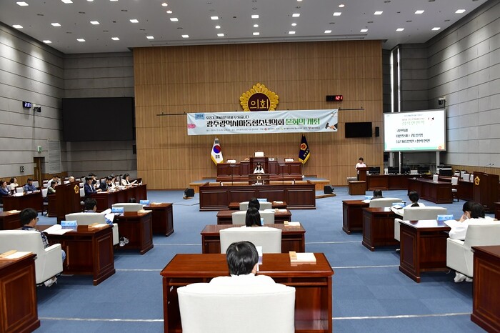 | ▲ 광주광역시, 지난 5일 광주시의회 본회의장에서 제8대 청소년의회와 제4대 아동의회 동시 개최 / 광주광역시 제공 |