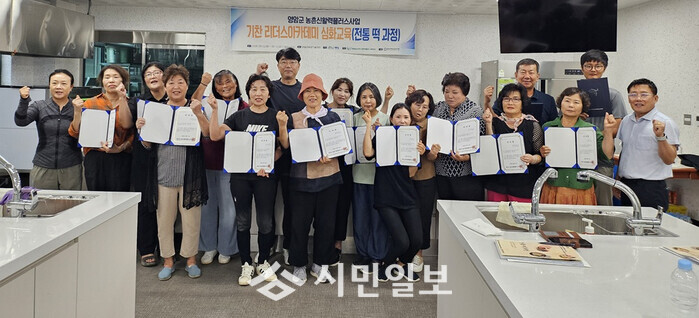 | ▲ 영암군, "기찬리더스 아카데미 심화교육 전통 떡 과정" 수강생 수료 기념촬영 / 영암군 ㅈ[겅 |