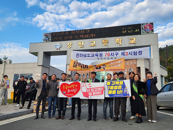 시험장 입구에서는 강진 부군수뿐 아니라 강진교육지원청, 강진경찰서 및 강진고 재학생들이 함께 모여, 이날을 위해 고생하고 노력해 온 수험생들을 위해 열렬히 응원했다.