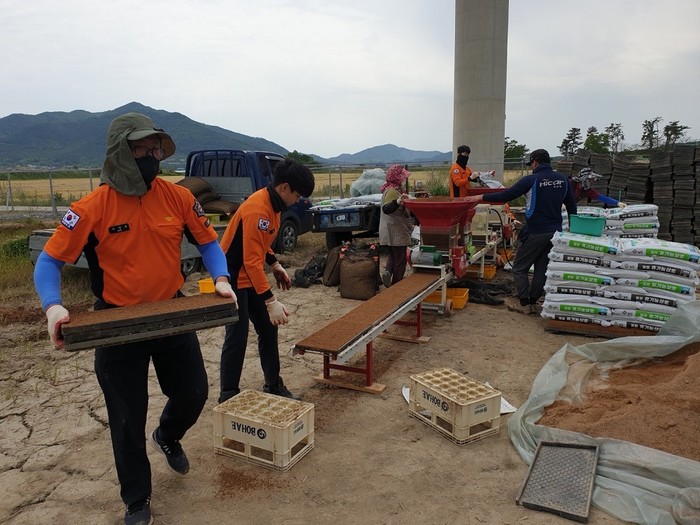 이날 작업에 참여한 한 소방대원은 “옛말에 ‘바쁠 때는 부지깽이도 거든다.’ 라는 말이 있다. 비록 서투른 농사일이지만 조그마한 보탬이 돼 흐뭇한 마음이 앞섰다.”고 소감을 밝혔다.