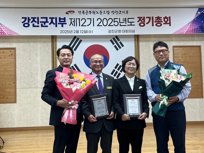 공무원노동조합 강진군지부는 건전한 공직문화 조성을 위해 매년 조합원들의 의견을 반영한 베스트 공무원과 의원을 선발해 발표하고 있으며, 2024년 베스트 공무원으로는 관광체육국 임성수 국장, 세무회계과 허진영 과장, 성전면사무소 김걸 면장, 농어촌개발과 윤재필 팀장, 기획홍보과 김진태 팀장, 병영면사무소 채승석 팀장이 선정됐으며, 강진군의회에서는 김창주 의원과 유경숙 의원이 함께 이름을 올렸다.