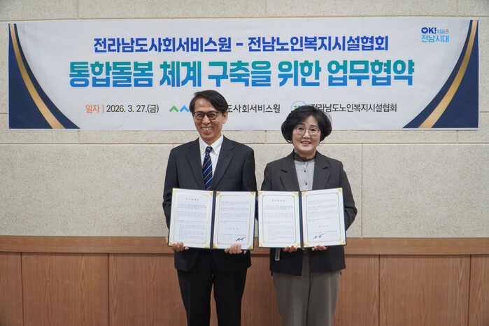 [남악=황승순 기자]전라남도사회서비스원이 지역사회 중심 통합돌봄 체계 강화를 위해 전라남도노인복지시설협회와 협력에 나섰다.