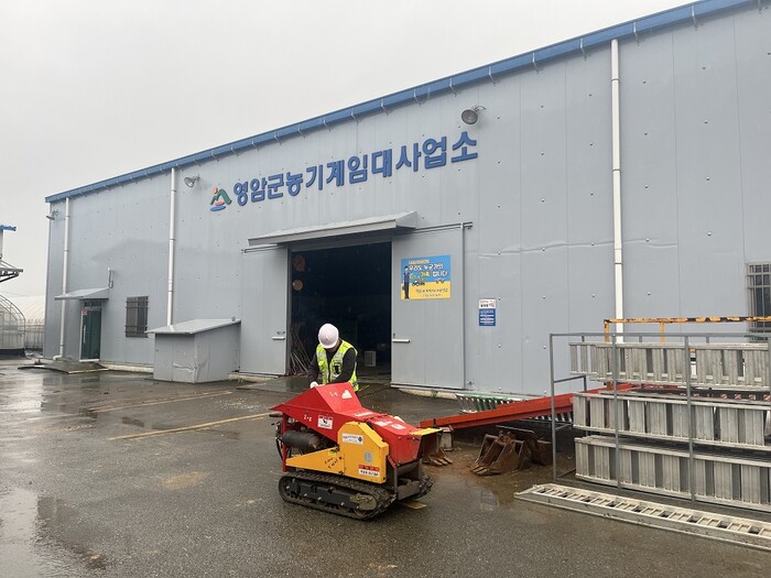 | ▲ 영암군 농업기술센터 관계자가 영농 부산물 파쇄기를 점검하고 있다. / 영암군 제공 |