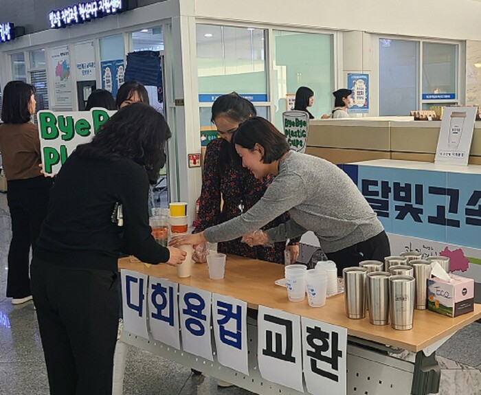 | ▲ 광주광역시 자원순환과, 지난 19~20일 시청에서 직웍 및 시민 대상 다회용컵 사용 캠페인 / 광주광역시 제공 |