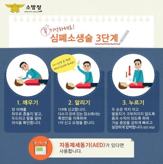 소방서 관계자는“환절기를 맞아 누구나 심혈관질환 및 응급상황이 발생할 수 있기 때문에 심폐소생술 3단계를 사전에 익혀 나의 가족과 이웃을 살릴 수 있도록 해야 한다.”고 말했다.