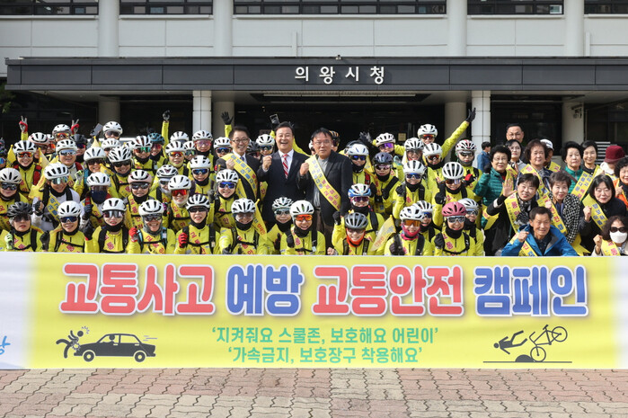 한편, 이날 (사)한국교통장애인협회 의왕시지회 및 자전거교통봉사대 회원들은 관내 주요 도로와 자전거길에서 ‘스쿨존 내 안전운전’, ‘자전거길 가속 금지, 보호장구 착용’ 등을 강조하는 가두캠페인을 전개했다.